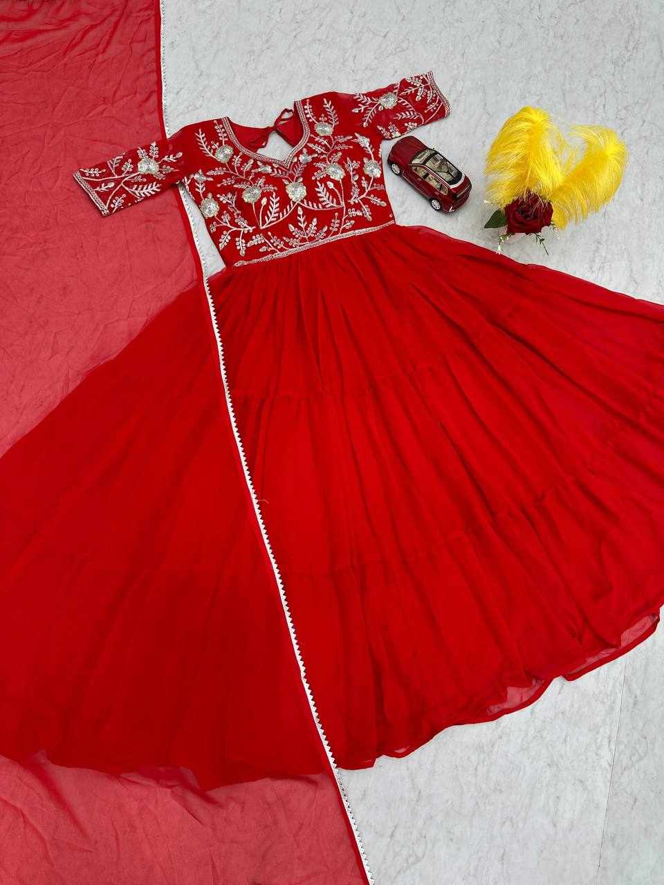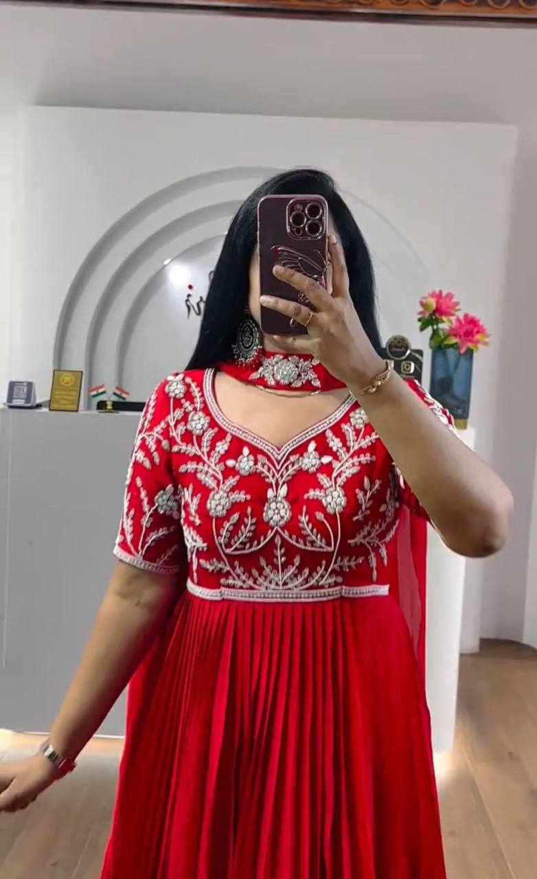 | Name : | PC 459 Red Fox Georgette Embroidered Gown |